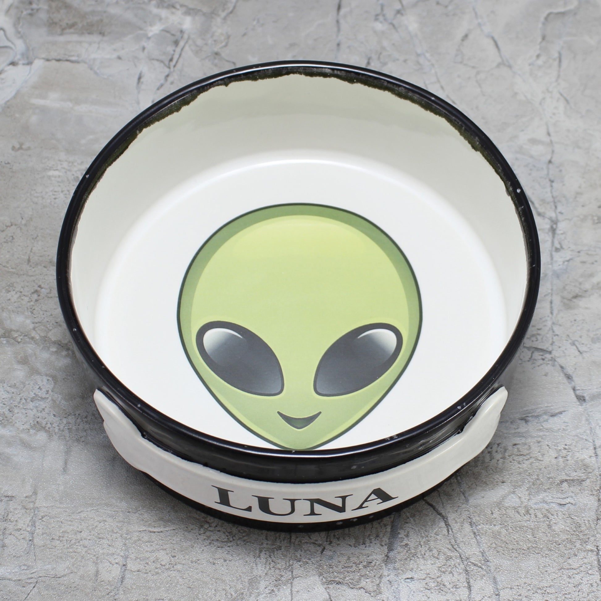 Personalized Alien Dog Bowl, Black Speckled Stoneware